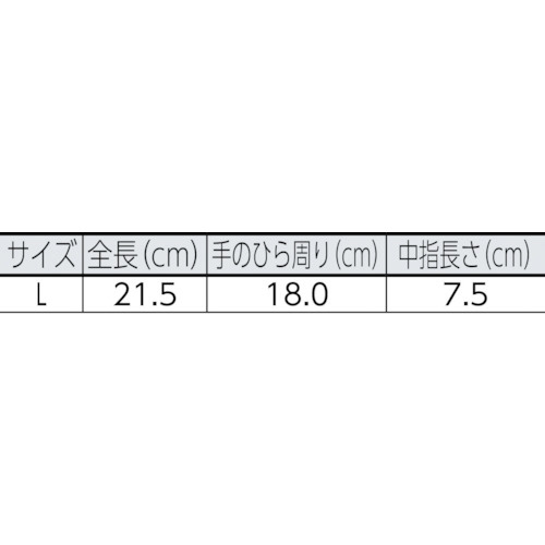 | 仕様1 | 全長(cm):22.5 手のひら周り(cm):19.0 中指長さ(cm):7.5 ゲージ数:7 |