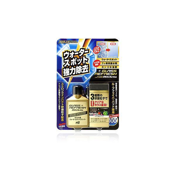 クリーナーを付属のパッドにとって磨くだけ。新開発のトリプル研磨粒子が、 これまでのガラス用コンパウンドでは落とせなかったウォータースポットを除去。 同時にフッ素系撥水剤や、固着した油膜をすっきり落とし、新品時のガラスの ような透明感が復活します。