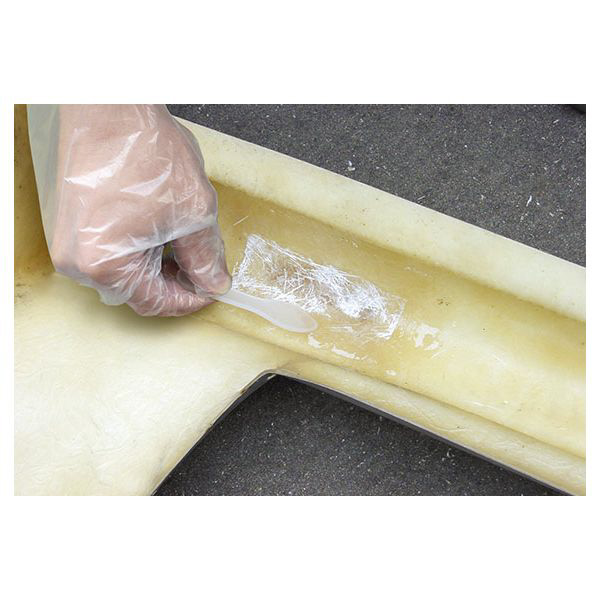 やせの少ない2液性のポリエステル樹脂の補修キット。