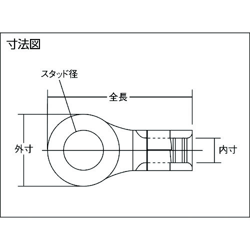 接触面(舌部)が丸く、ねじ固定用の取り付け穴がある裸圧着端子です。軟銅のより線または、単線の電線を接続するために使用します。