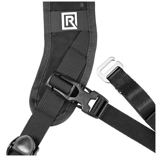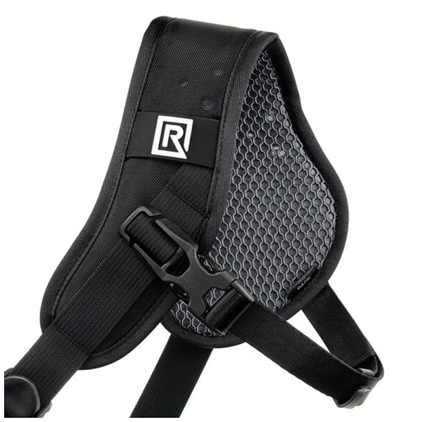 BLACKRAPID(ブラックラピッド)の斜め掛け速写ストラップ。激しい動きでもパッドのズレを最小限に抑えるアンダーアームストラップも装備。