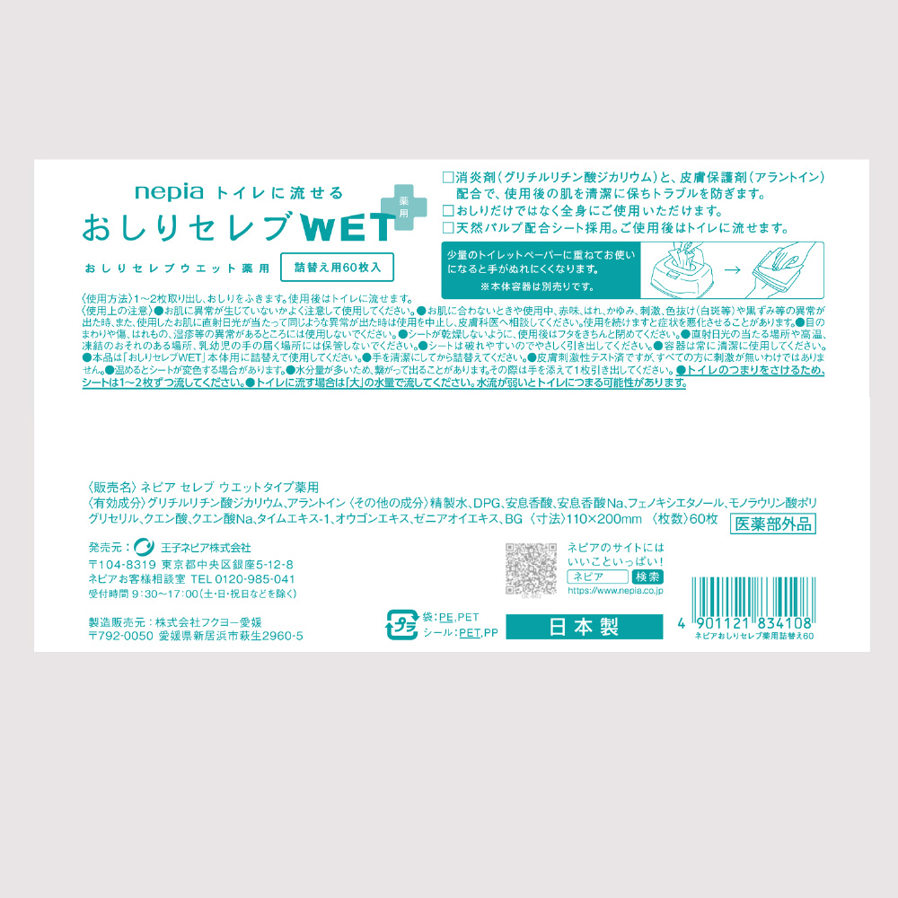 | 商品名 | おしりセレブWET薬用 つめかえ用 |