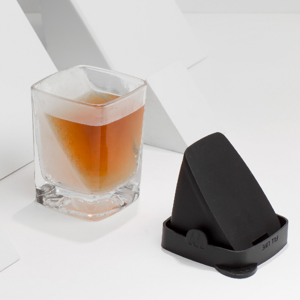 ■シリコンカバーをはめて、水を入れ凍らせるとグラス直接に斜めの氷を作ることができます。