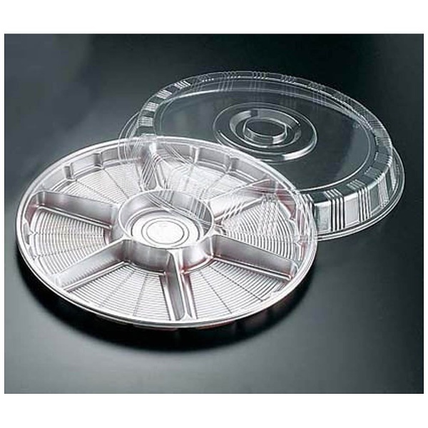 透明蓋付きで内容物が確認しやすい、6仕切りのサークルトレー(20セット入)。