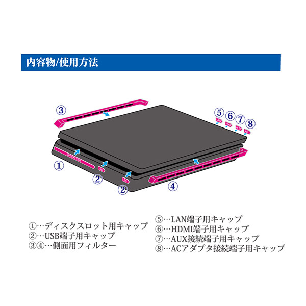 シリコン製のポートキャップで、あらゆる端子をホコリから優しく保護し装着しても違和感なく、PS4(CUH-2000)本体を傷つけません。