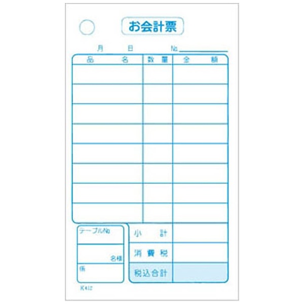 | 商品名 | 会計伝票 単式 K412 消費税対応 (20冊入) <PKI66> |