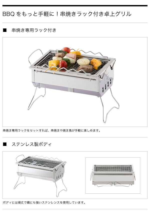 BBQをもっと手軽に!串焼きラック付卓上グリルです。