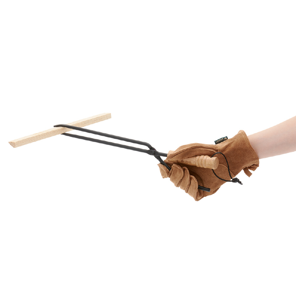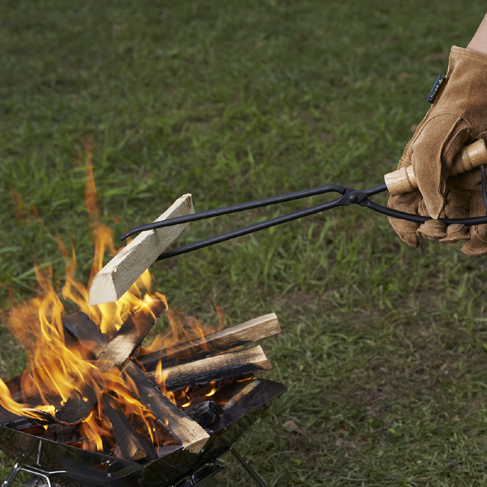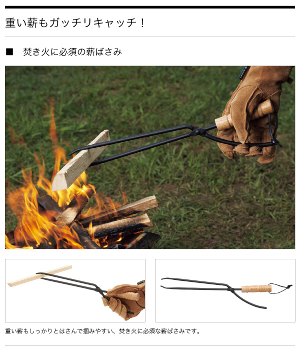 重い薪もしっかりと挟んで掴みやすい、焚き火に必須な薪ばさみです。