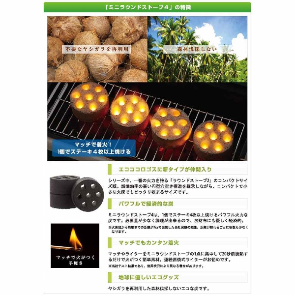 ヤシガラ成型炭 エコココロゴス・ミニラウンドストーブ 3 83100103