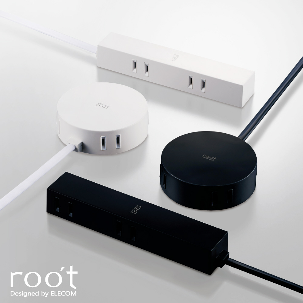 上面を光沢、側面をマットに仕上げ、2つの質感をもたせた高級感のあるデザインタップ“roo’t(ルオット)”です。テレビ周りやオーディオ周り、卓上での利用に最適です。