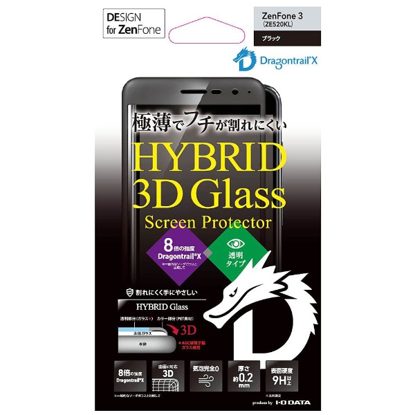 【在庫限り】 ASUS ZenFone 3(ZE520KL)用 HYBRID Glass Screen Protector 3D ドラゴントレイルX ブラック BKS-ZE52G2DFBK