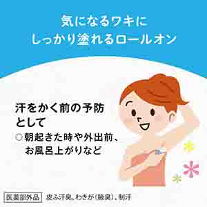 皮脂に浸透。潜んだ汗のニオイ菌まで届いて、殺菌して汗のニオイを防ぐ。●自然由来の殺菌成分BGA(β−グリチルレチン酸)配合 ●自然由来の消臭緑茶エッセンス配合 ●気になるワキにしっかりぬれる、速乾ロールオン ●無香料 効能効果:皮ふ汗臭、わきが(腋臭)、制汗 (医薬部外品)
