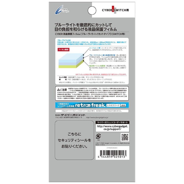 | 商品名 | CYBER・液晶保護フィルム [ブルーライトハイカットタイプ] (SWITCH用) 【Switch】 [CY-NSFLM-BHC] |