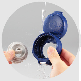 ・中はもちろん、外側もすみずみまで洗うことができるので、汚れをしっかり洗い流せます。(水中に放置しないでください。)
