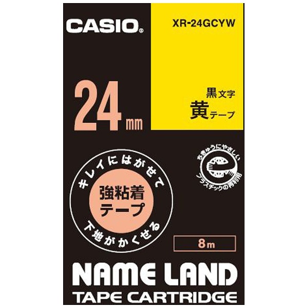 | 商品名 | ネームランドテープ(NAME LAND) キレイにはがせて下地がかくせる強粘着テープ (黄/黒文字/24mm幅) XR-24GCYW |