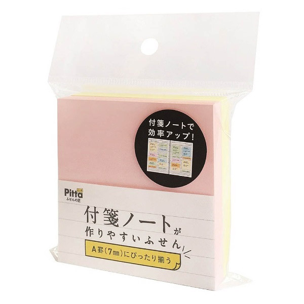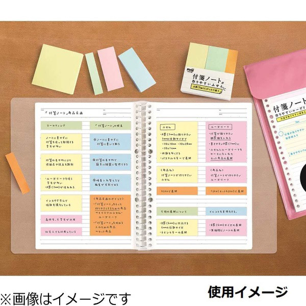 ふせんに書いてA罫ノートに貼り、いつでもふせんの色や形で整理できる