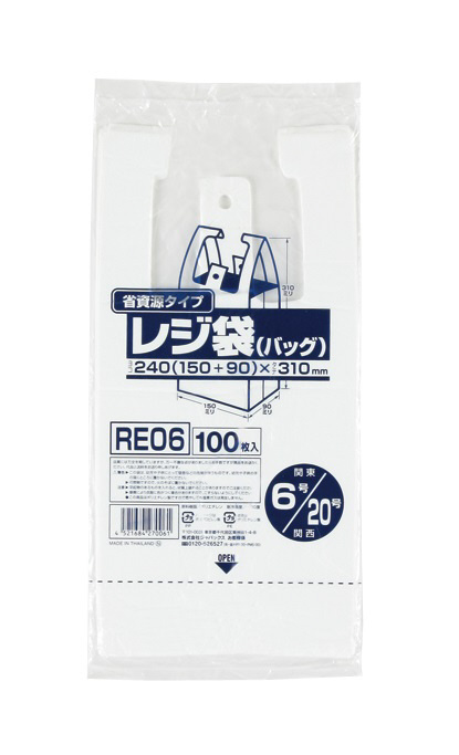 業務用省資源タイプ レジ袋(100枚入) RE06 6号/20号 乳白 <XLZ3501>