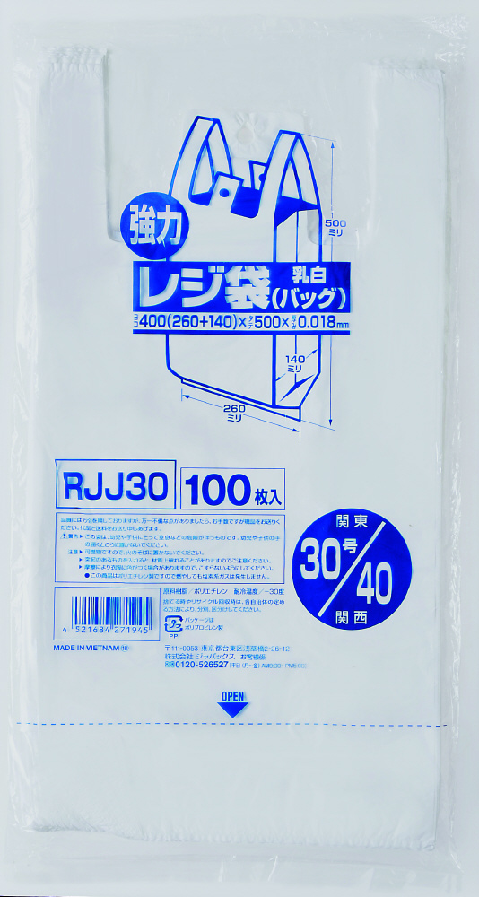 | 商品名 | 業務用強力レジ袋(100枚入)(乳白色) RJJ-30 30号 <XLZ4405> |