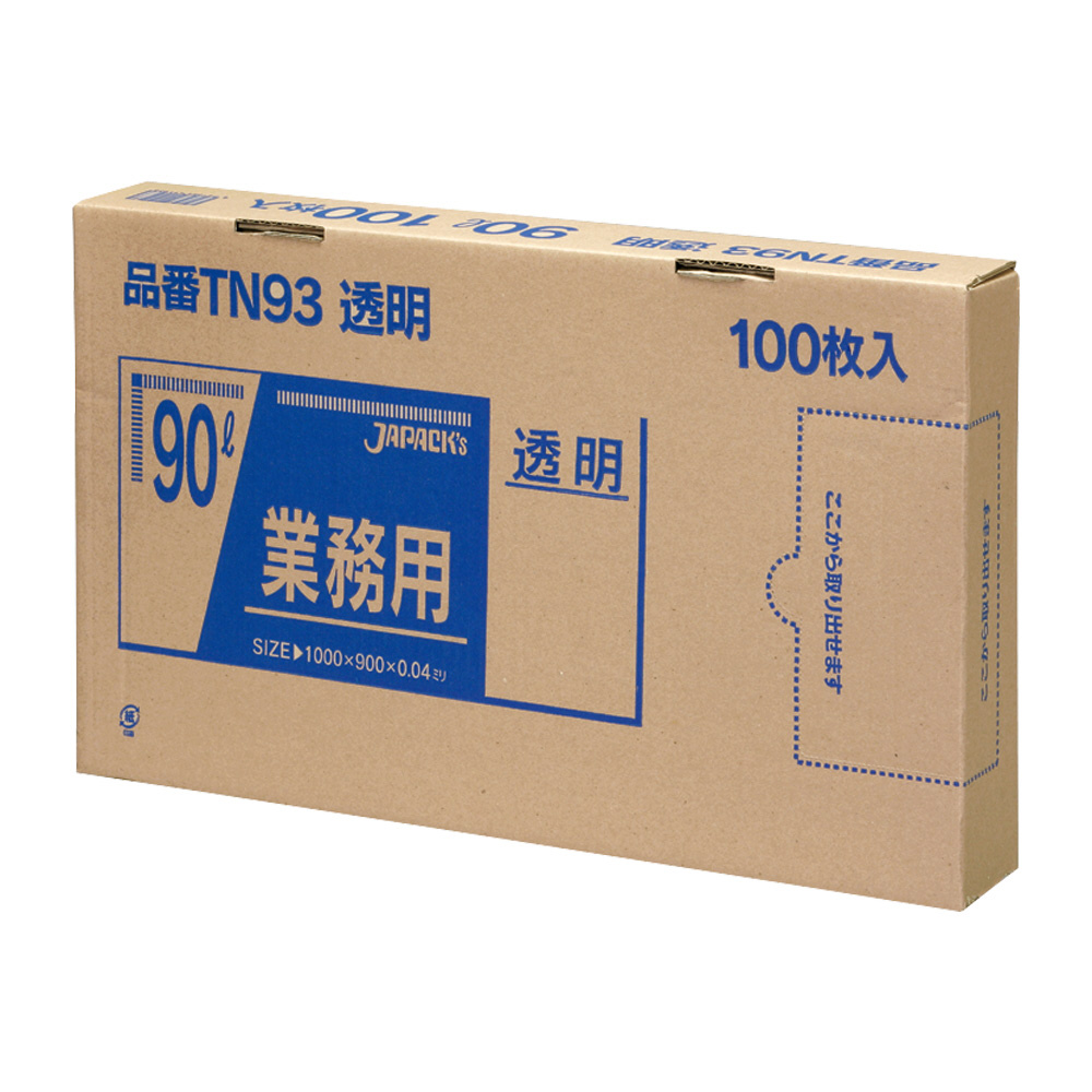 業務用強力ポリ袋(100枚箱入) 90L 透明 TN93 <KPL2211>