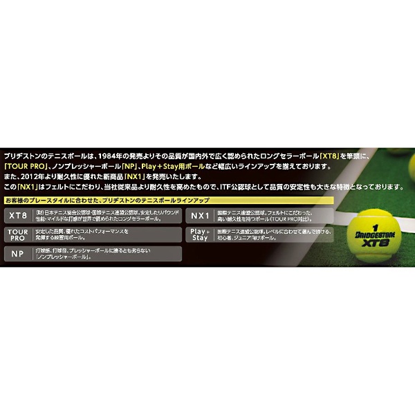 (財)日本テニス協会・国際テニス連盟公認球として支持を受けているロングセラーボールが、爽快な打球感はそのままに、耐久性・リバウンド性をパワーアップし、さらなる進化を遂げて新登場。