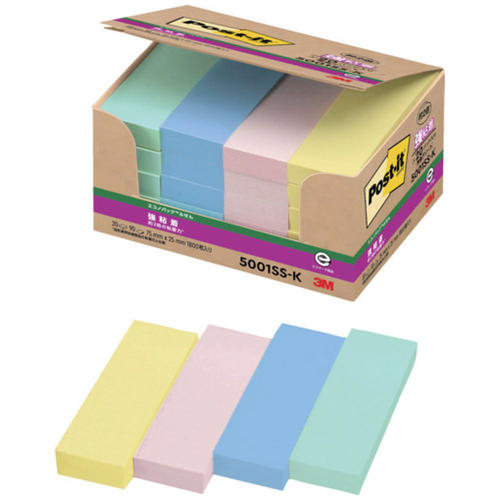 | 商品名 | 3M ポスト・イット 強粘着 75X25mm 90枚X20パッド 4色混色 5001SS-K |