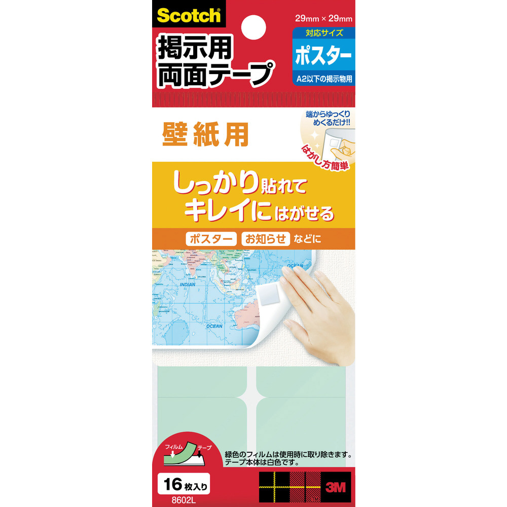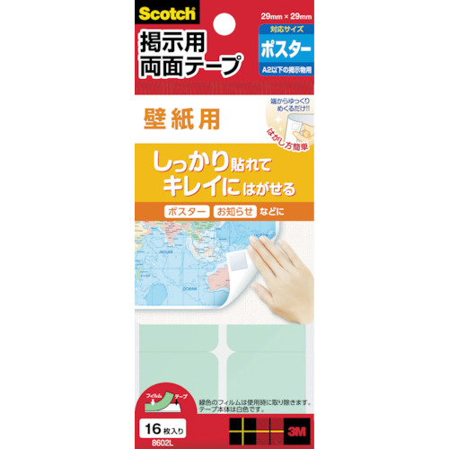 | 商品名 | 3M スコッチ 掲示用両面テープ 壁紙用 29X29mm 16片入り 8602L |