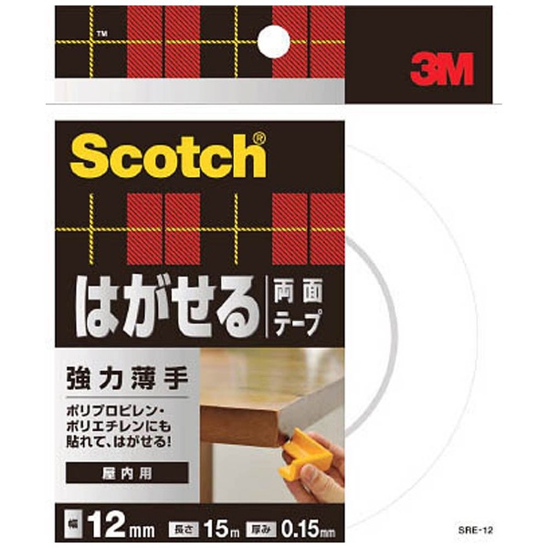 商品名 3M スコッチ はがせる両面テープ 強力薄手12mmX15m SRE−12 SRE-12