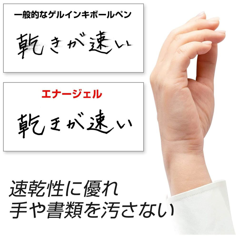 ノック式エナージェルシリーズの5つのボール径が替芯として使用可能です。(本体の内蔵芯は0.5mmです)