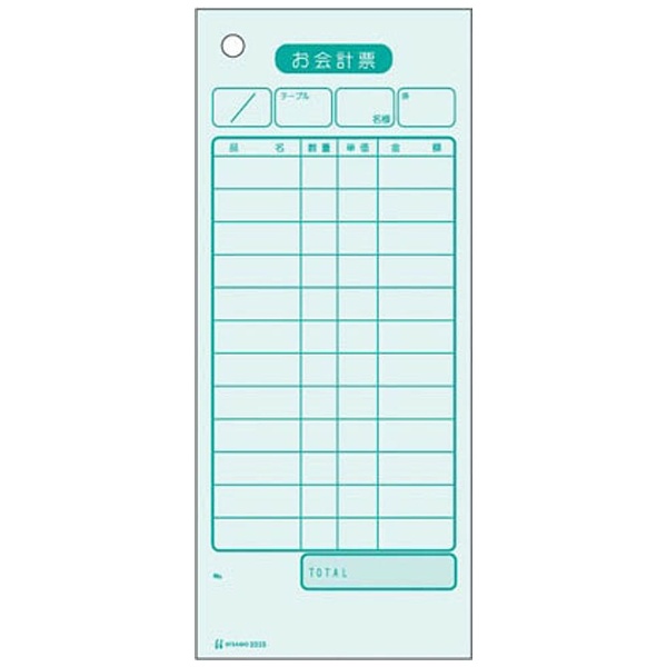 ヒサゴのセット伝票お会計票(単式、2000枚入)。
