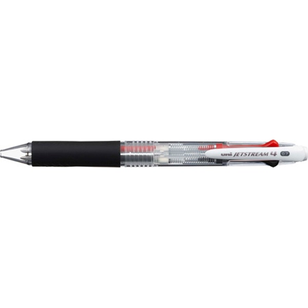 [油性ボールペン] ジェットストリーム 4色ボールペン 透明 (ボール径:0.7mm、インク色:黒・赤・青・緑) SXE450007.T