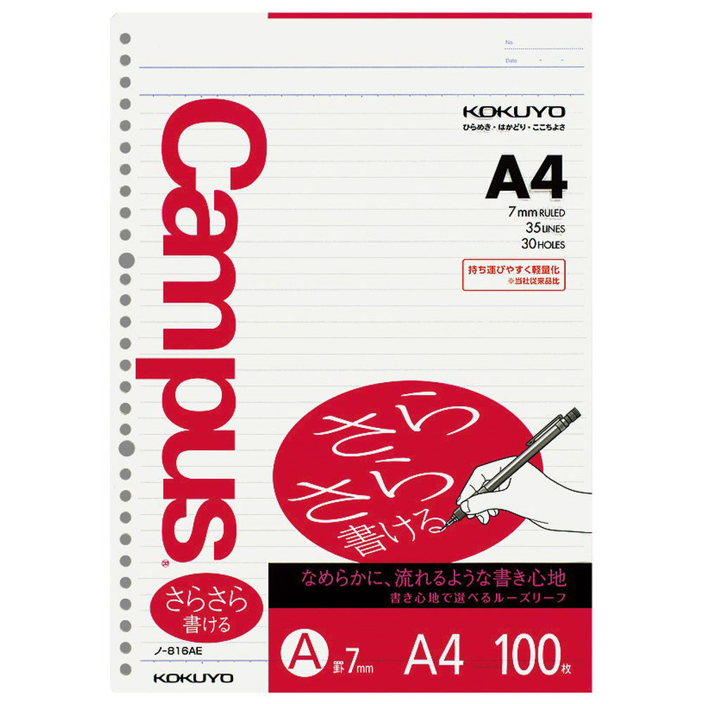 [ルーズリーフ] キャンパスルーズリーフ (さらさら書ける) (A4・A罫・100枚) ノ-816AE