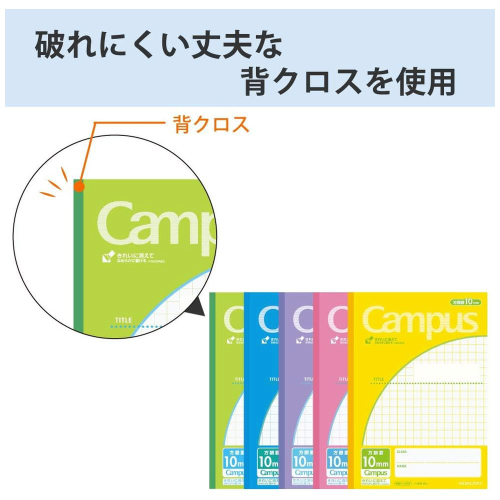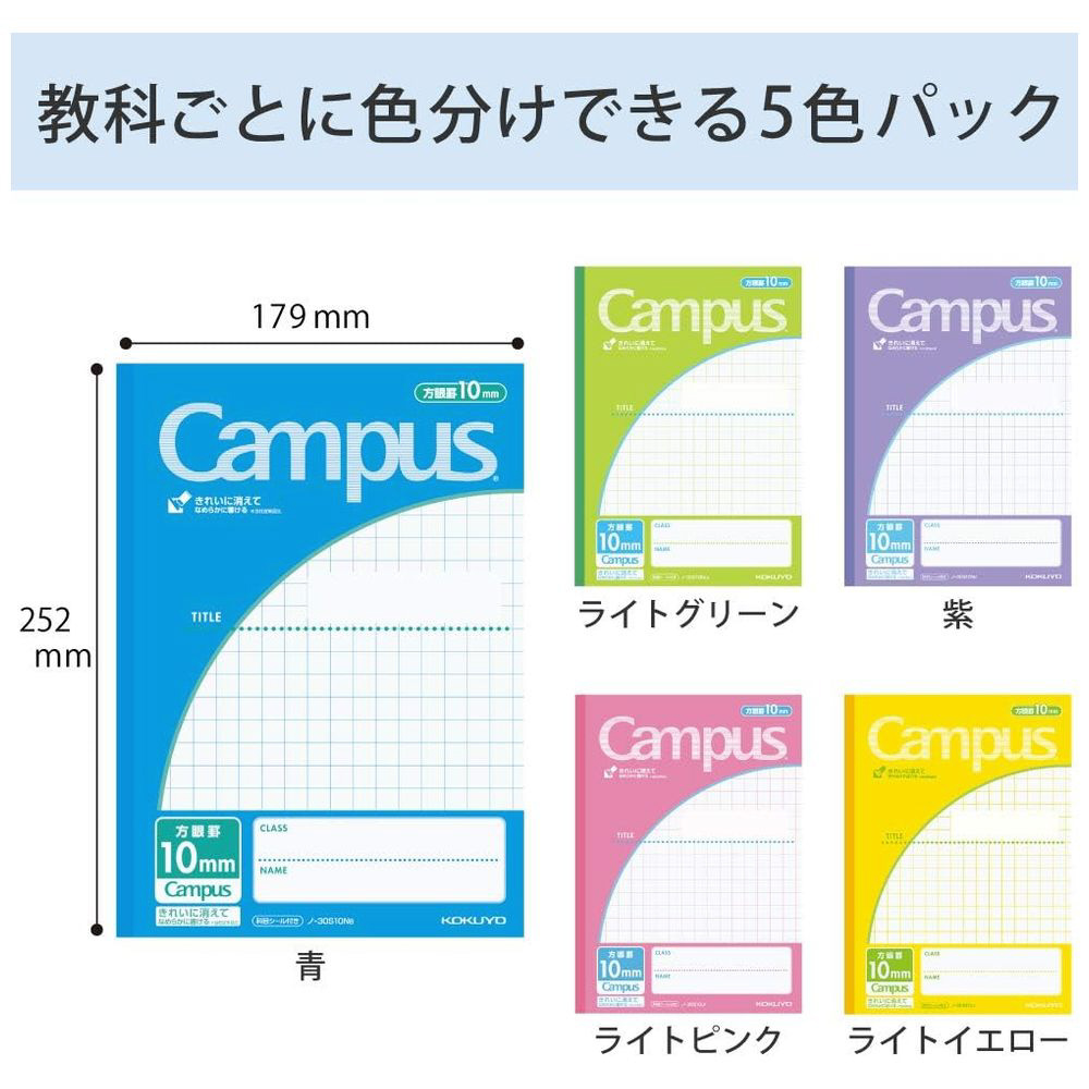 [ノート] キャンパスノート(用途別) 10mm方眼罫 5色パック (セミB5・10mm方眼罫・30枚) ノ-30S10NX5