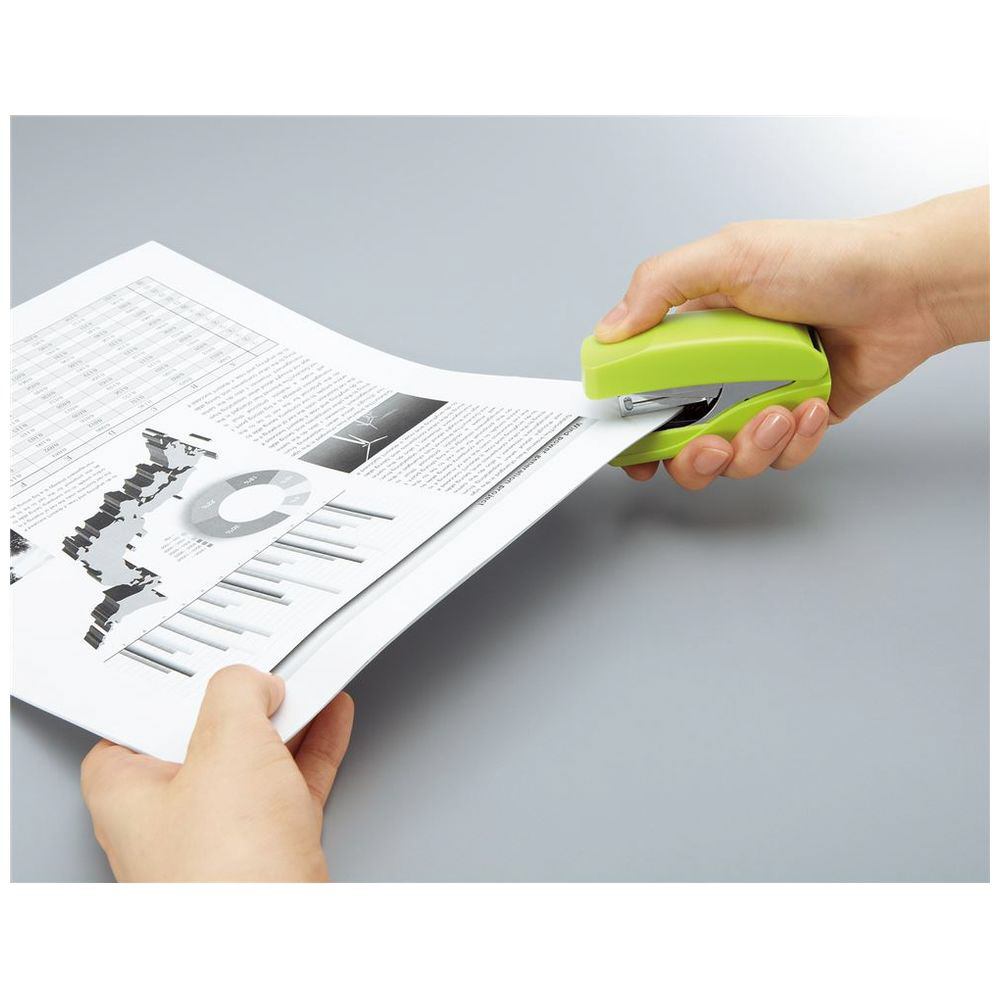 普段使いのステープラーに。たくさんの枚数でも軽い力でスマートにとじられます。(イエローグリーン)