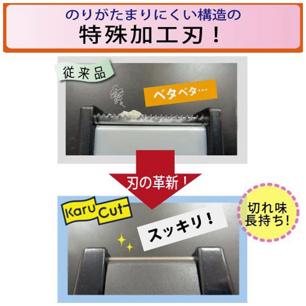 ●刃はテープののりが付きにくく、切り心地が長持ちする設計です。