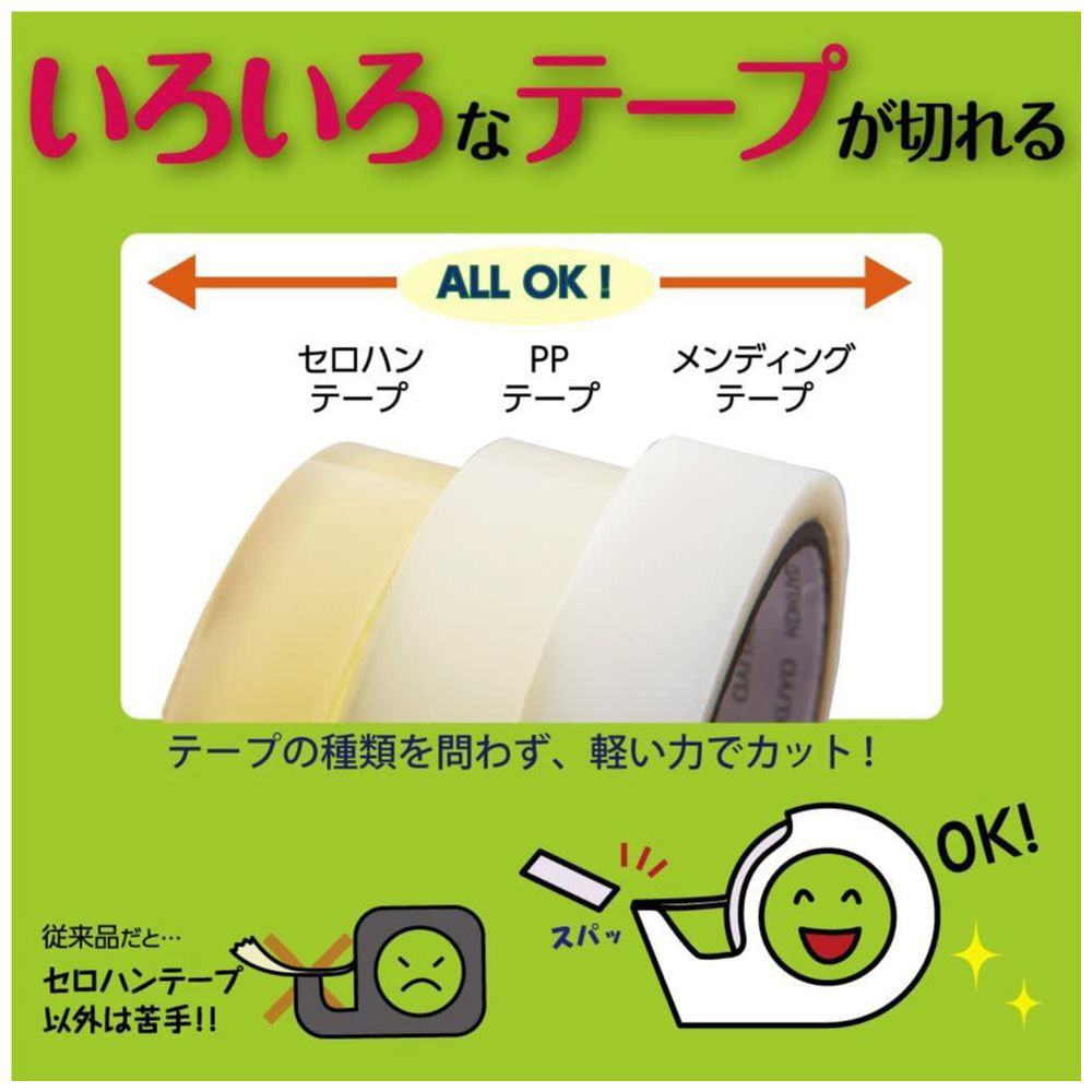 ●カルカット独自の特殊加工刃で約1/2の軽い力でテープを切ることができます。(当社比)