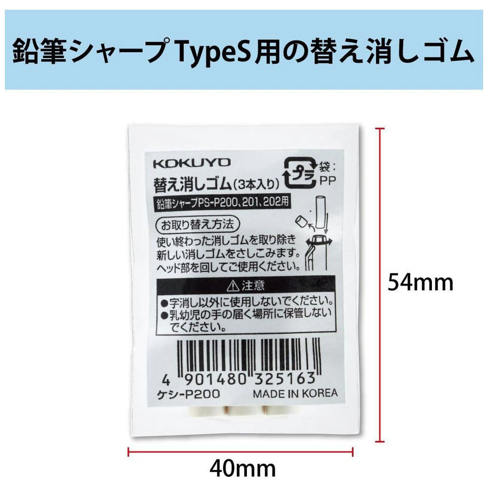 | 商品名 | [消しゴム] 鉛筆シャープTypeS用 替え消しゴム W3本入り ケシ-P200 |
