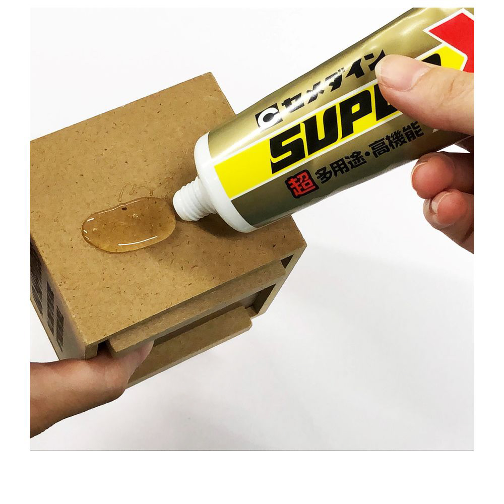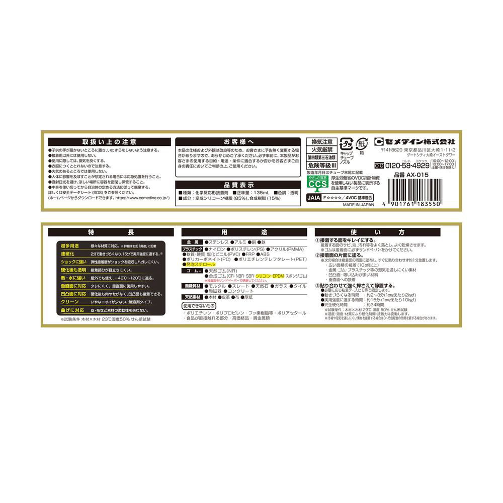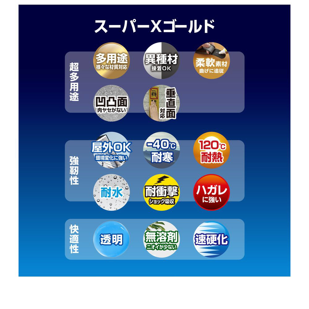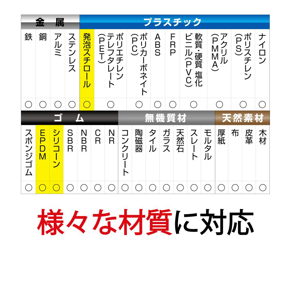 ・金属・プラスチック・ゴム・石・木・紙・皮革などの接着に。はみ出しても目立ちにくいクリヤタイプです。