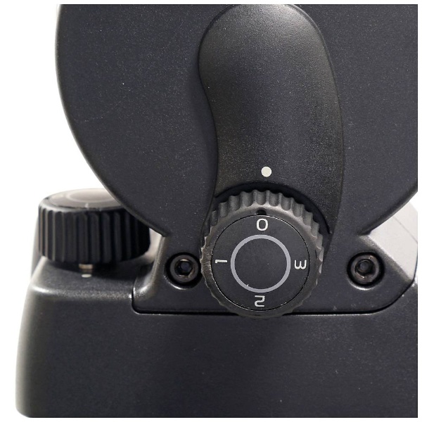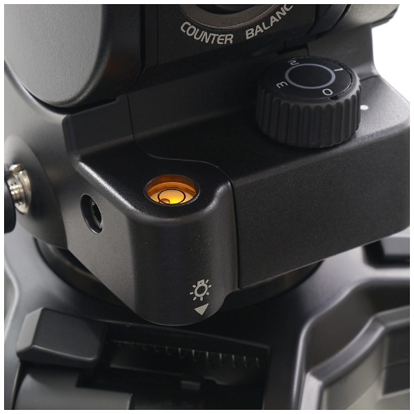 雲台の水平がしっかり確認できる、視認性の良い丸型水準器を標準装備しています。暗い場所でも照明付きなのではっかり見えます。