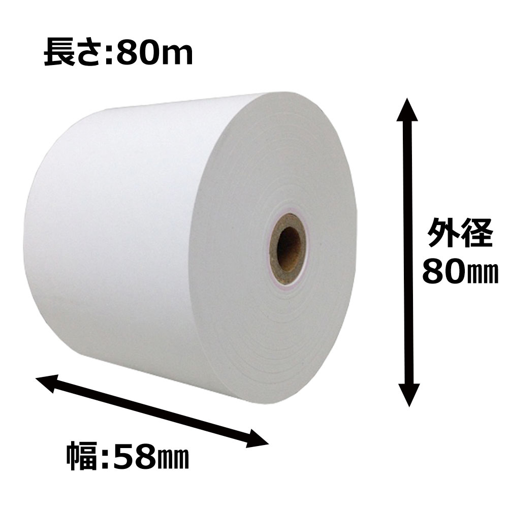 幅58mm、外径80mm(長さ約80m)タイプのサーマルプリンター用ロールペーパー