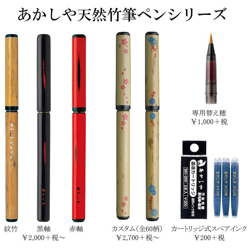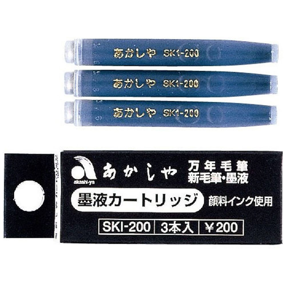 あかしや天然竹筆ペン専用のスペアインクです。水性顔料インク・墨色。3本入り。