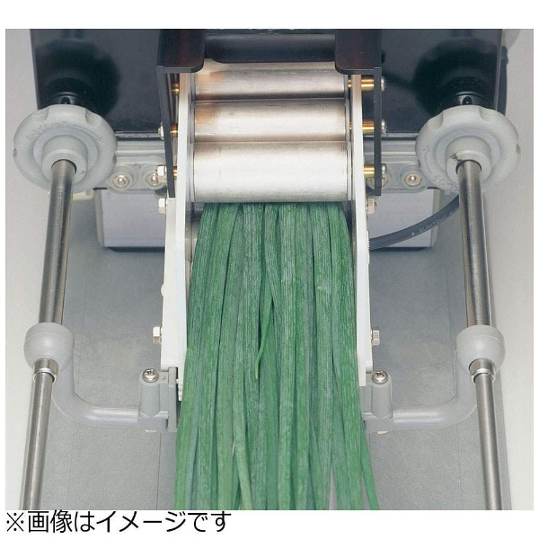 可変コンベアーの採用で10度〜50度まで切断角度が無段階で設定できます。厚みが3種類選べるコンベアー送り装置付きです。白髪ネギの代わりに、白ネギの松葉切りができます(松葉切りは本機独自の切り方です)。青ネギ、白ネギの種類を選ばず、はす切りが可能です。電動ネギ丸<CNG04>、手動ネギ丸<CNG03>に取り付けて使用します。この商品単品では使用できませんのでご注意ください。