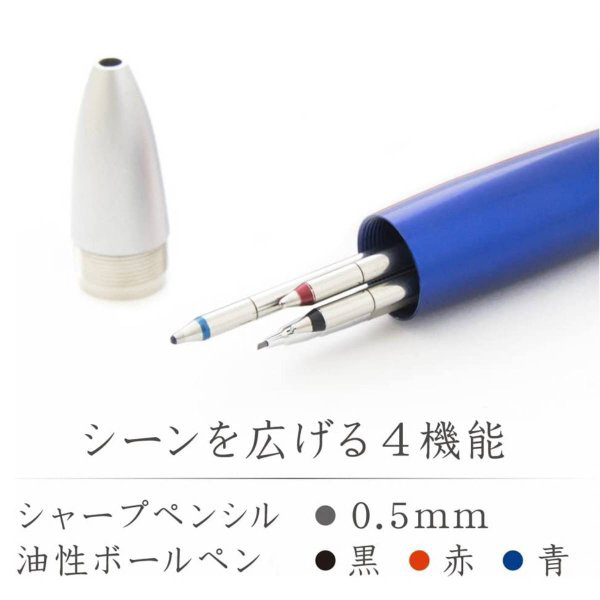重さ18gの硬質アルミ軽合金製ボディに、4機能を内蔵した多機能ペンです。