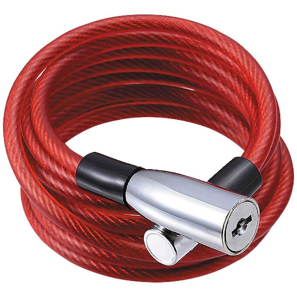 コイル式 ロングワイヤー錠(マットレッド/200cm) CP-LK512 [2000mm /ワイヤーロック]