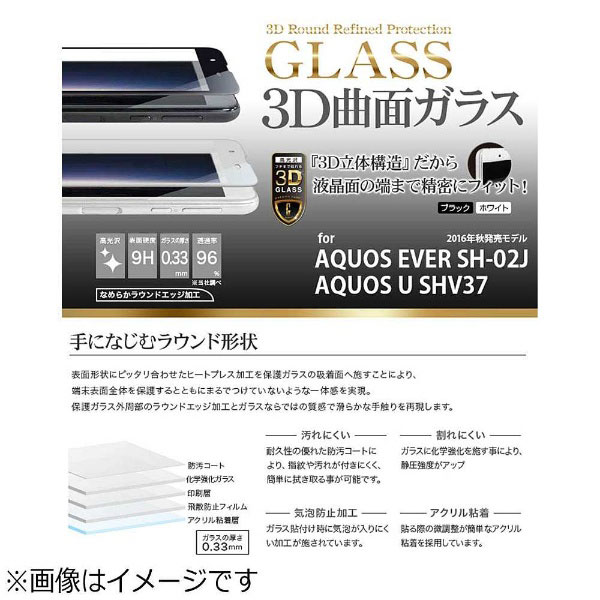 AQUOS EVER SH-02J / AQUOS U SHV37用 3Dガラスパネル ブラック 3S773SH02B
