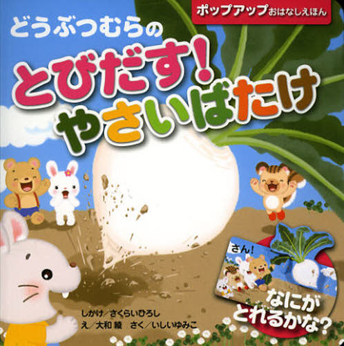 にんじんをポンッとひき抜く、さつまいもをズルッとひっぱる…など、かわいいどうぶつたちが畑からやさいを収穫する様子を、迫力満点のポップアップで楽しむことができる、おはなしえほん。やさいに興味をもつきっかけにもなる一冊。