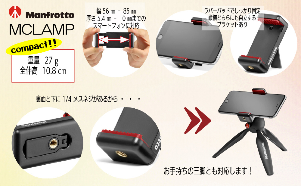 | 商品名 | スマートフォン用三脚アダプター MCLAMP |
