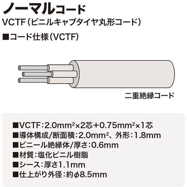 | 仕様1 | 定格容量:15A・125V(1500Wまで) |