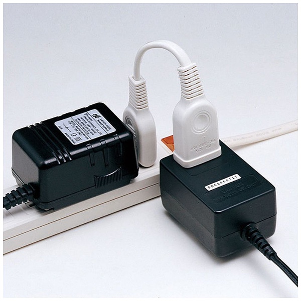 タップや機器の電源延長に便利。トラッキング火災防止絶縁キャップ付スイングプラグ採用