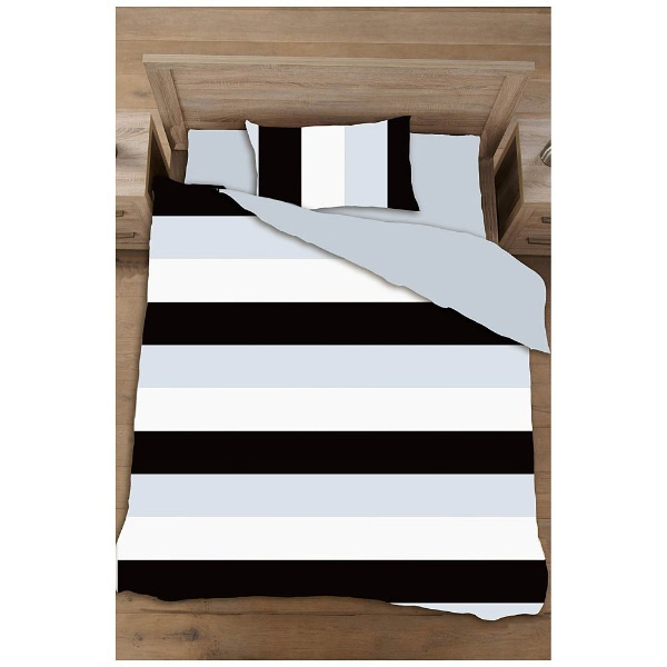 【掛ふとんカバー】ボーダーブロード ダブルロングサイズ(綿100%/190×230cm/ブラック)
