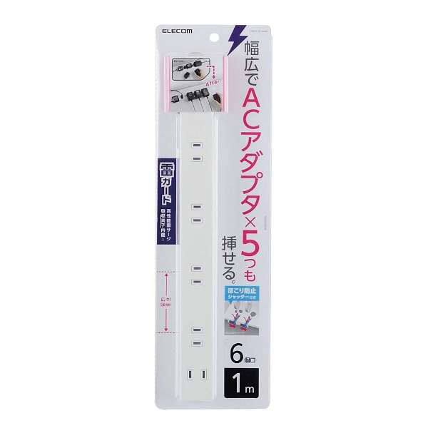ほこり防止シャッター付き雷ガード内蔵スリム電源タップ(幅広・2ピン式・6個口・ホワイト・1.0m) T-NSLK-2610WH